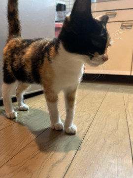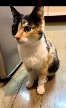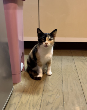 猫の本能か教えなくてもトイレはちゃんと使えるし、猫じゃらしには思いっきり反応して遊ぶ、ダメだと教えた事は何かわかるようで、余計な事はしない賢い子猫です。それに毛色は綺麗な三毛でお顔はハチワレみたいで可愛らしい顔立ちをしています。そんな子猫の里親になってくれる方いらっしゃいませんか?