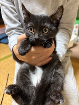 3匹の中で1番賢い子です。ペットボトルの水飲み器もすぐ飲めるようになりました。大人しく触るとすぐ喉を鳴らします。おもちゃで遊ぶ事が大好きです。