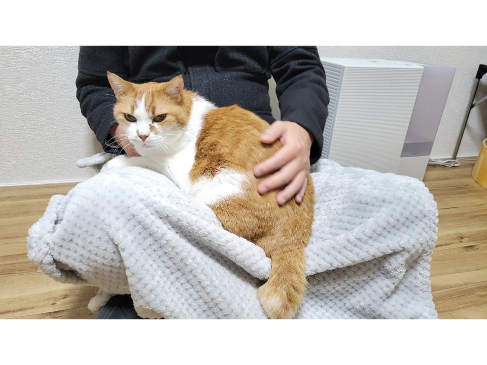 毛布が大好きで膝掛けの上や夜はベッドで一緒に寝てくれます。