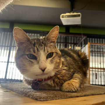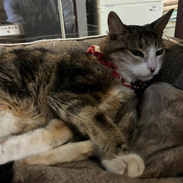 お膝の上が大好きな甘えん坊さんで、お客様のお膝の上にすぐ乗りに行きます。