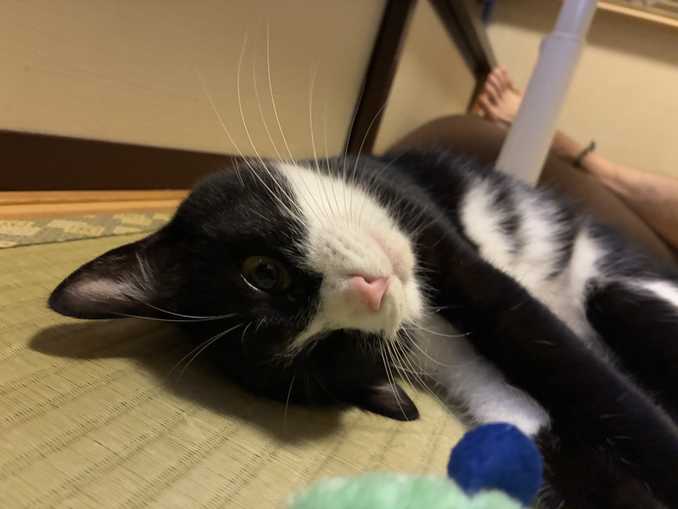 綺麗てま素敵な模様のハチワレちゃん。人にも猫にも甘えん坊な可愛い性格です。