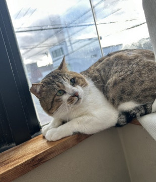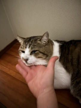 べったりとした人馴れはしてませんが、鼻の頭や耳、首元を撫でると、とても喜びます。顔が大きく、どっしりとしたかわいさがある子です