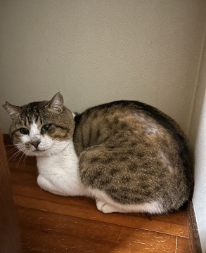 スーパーの裏で店員さんから餌をもらってましたが、車通りも多く事故の心配があり保護しました