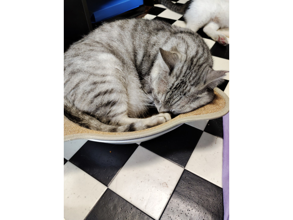 人にも猫にも優しく、人で言うとよくできた人といいますが、とても性格のよい猫さんです。ふと見ると、よく仲間を毛づくろいしてあげている姿が印象的です。多頭の我が家でもトラブルなく過ごしています。