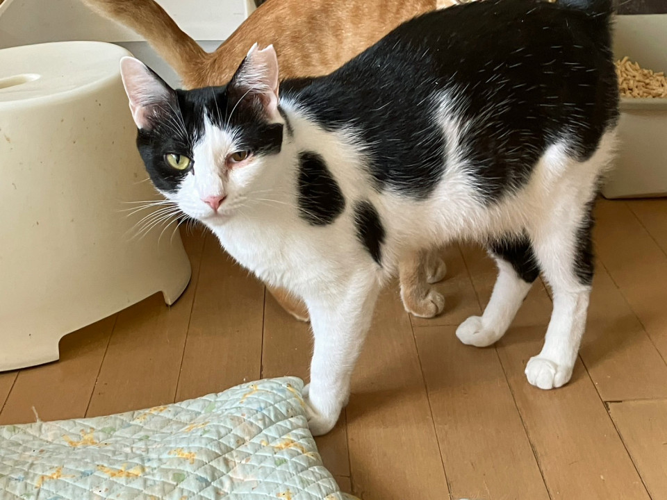 人が大好きです。抱っこ、爪切り、お風呂大丈夫です。他の猫ちゃんとも仲良くできます。