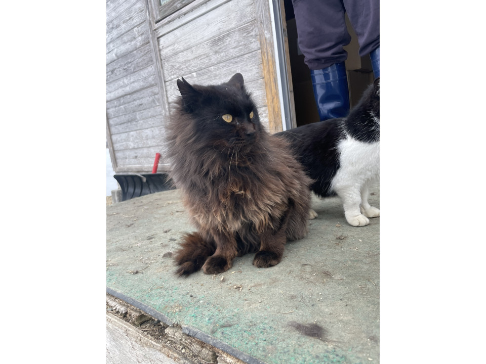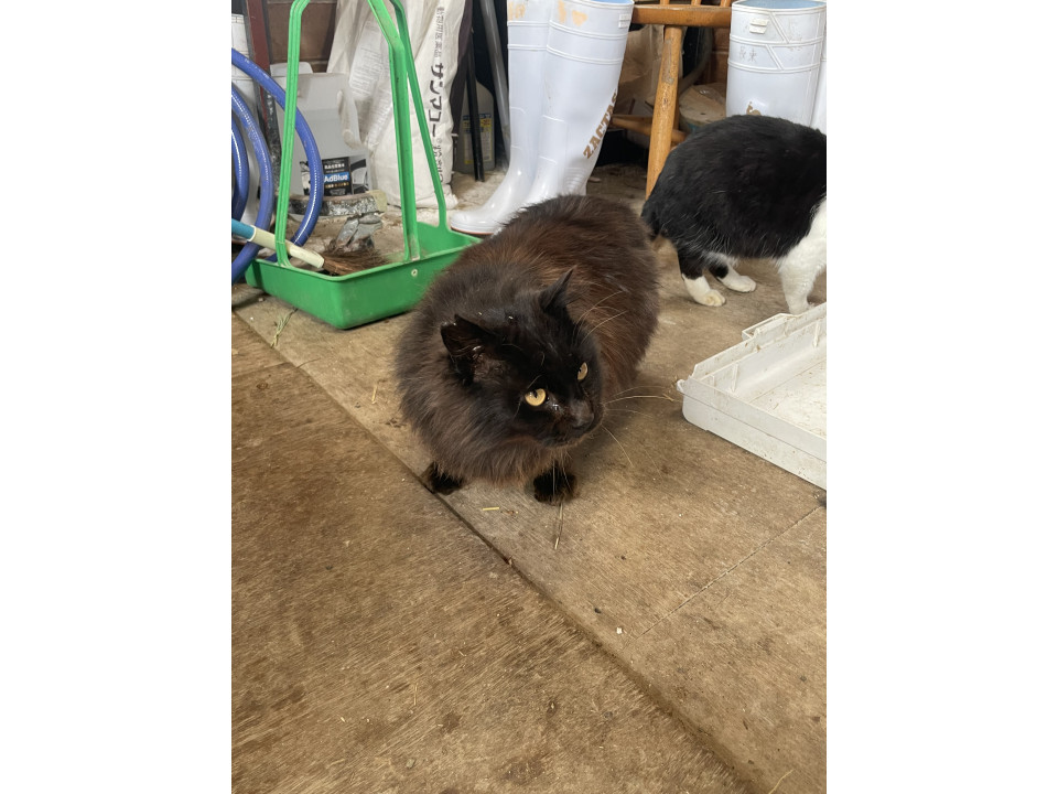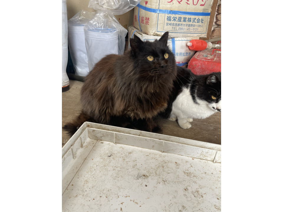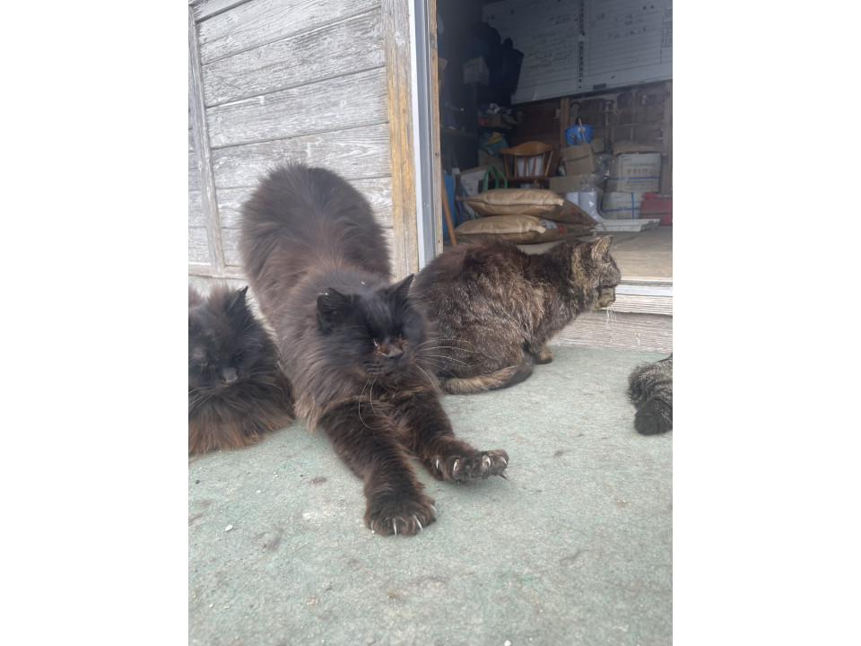 牧場の牛舎内で生まれたのでずっと外猫ですが、人慣れしており触らせてくれます。