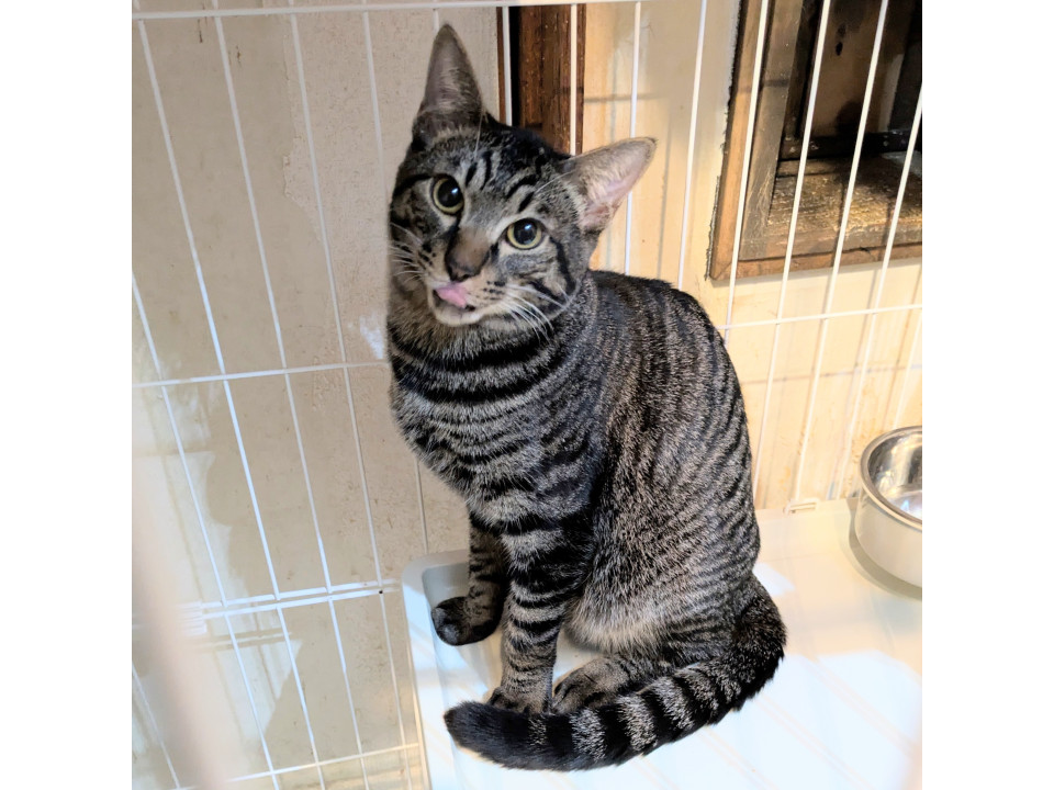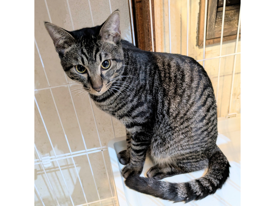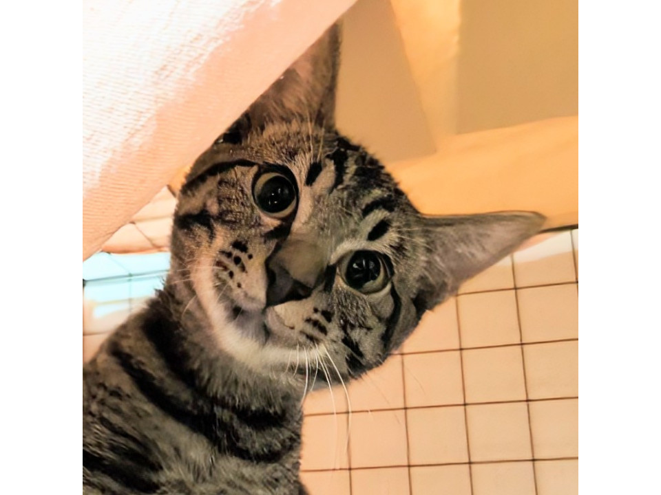 一見、目立った特徴のないごくごく普通のキジトラに見えますが、他のキジトラの子と比べてみると縞が細くて本数が多いのが特徴的で、けっこうレアなのではないかと思っています。