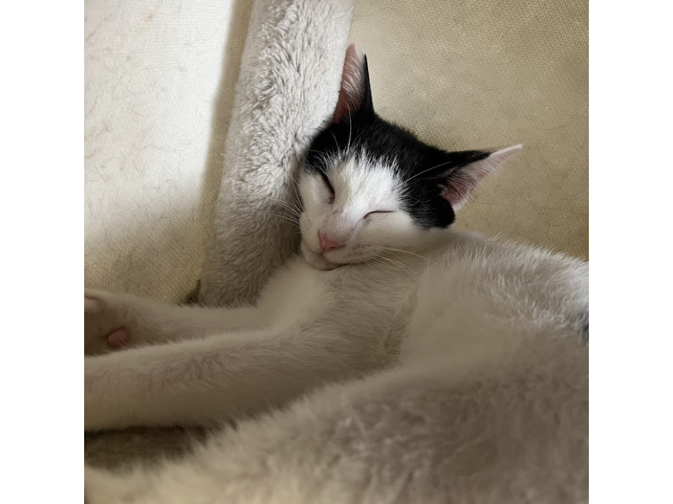 ごはんと遊びが大好きで、他の猫ちゃんと仲良くあそんでいます。