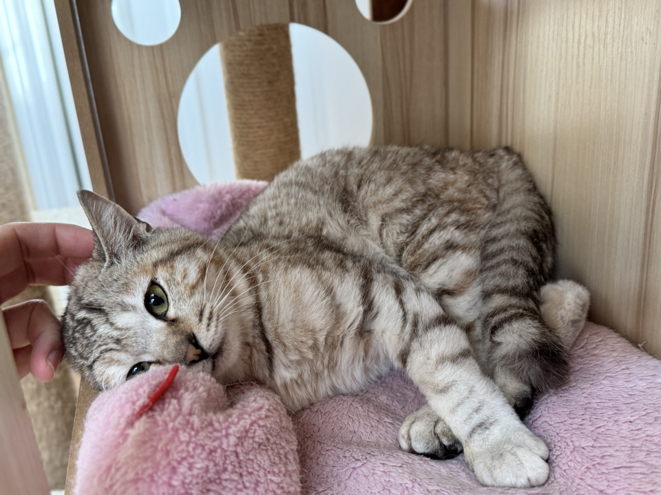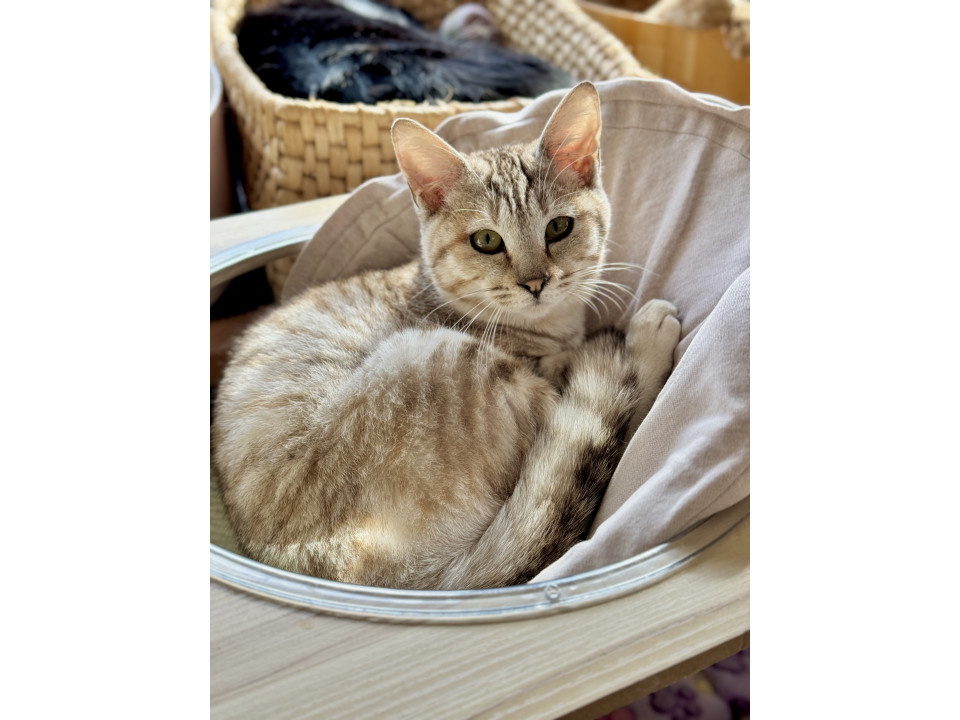 隠れ甘えんぼで、撫でられるのが大好き。人の側にいたがり、小さな声で話しかけてくれます。