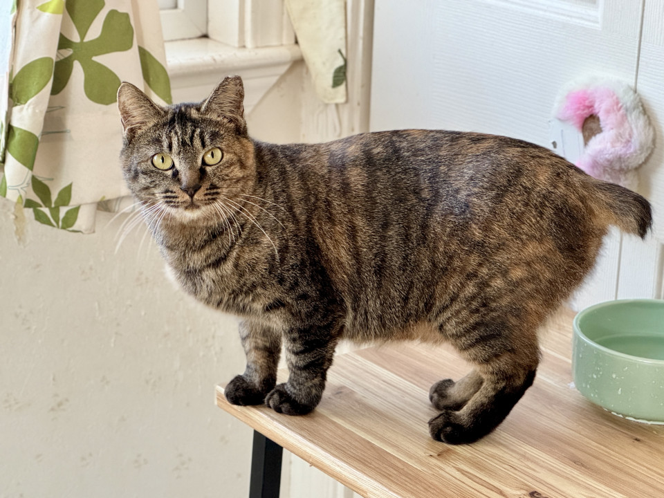 高齢飼い主さんが出先で亡くなり、親族に外に出されてしまった猫達のうちの1頭です。餌やりさんもいる地域だったため、TNRをしましたが、尻尾に麻痺があることがわかり、治療のために保護となりました。