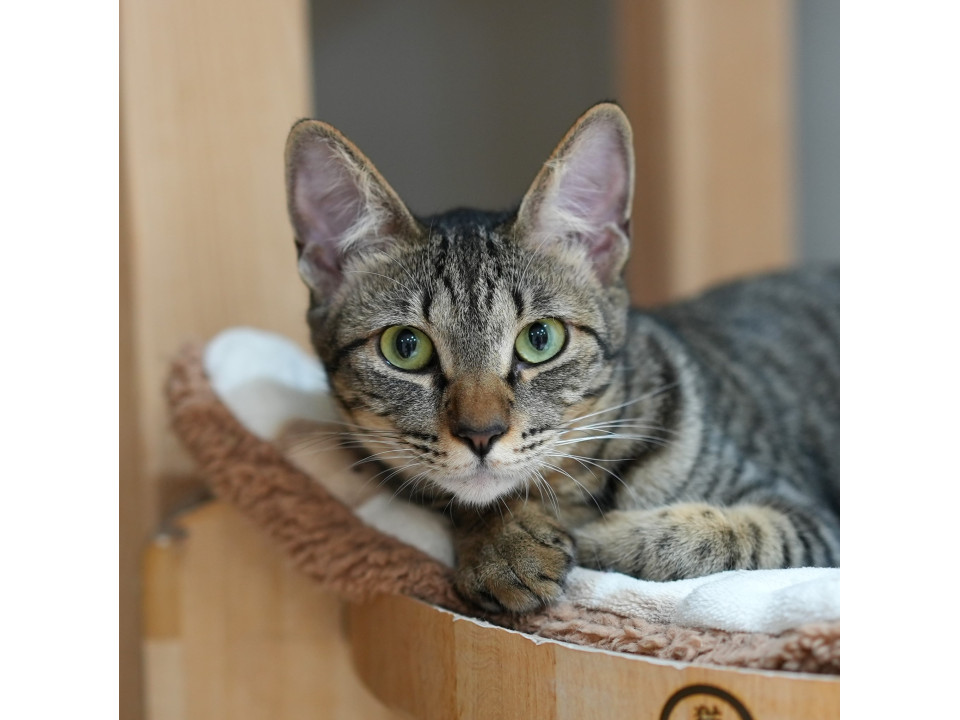 お目々クリクリの「ころん」ちゃんは、とても可愛いキジトラの女の子です。