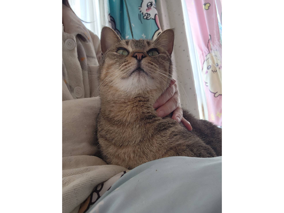 人が好きで、甘えん坊です。のんびりしています。一緒に寝てくれます。とっても可愛いです。人は大好きですが、猫ちゃんは苦手で、威嚇しますので、先住猫ちゃんがいないお家を希望します。