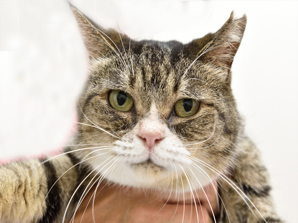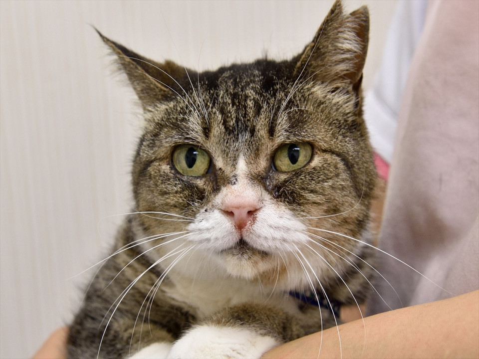 ボランティアさんが自宅敷地裏口の屋敷稲荷の中で、うずくまって雨露をしのいでいたところを見つけ、あまりに不憫で世話を始め、避妊手術をほどこしたとのことです。その後ボランティアさんが近隣から引き受けた保護猫と相性が悪く、家に居着かなくなってしまい、心を痛めていた矢先、ボランティアさんが高齢のこともあり、骨折し入院してしまったため、行く末を案じたそのお宅のお嬢さんがボランティアさんにかわって身柄確保し、弊方が相談を受け、医療を引き継ぎ、一通りの検査を行ったところ、健康に特段の問題なく、心あるご家庭が見つかれば、そのお宅で元気に生活ができると判断したため、この子にも家猫としての幸せを与えてやりたい一心で里親探しをはじめました。
