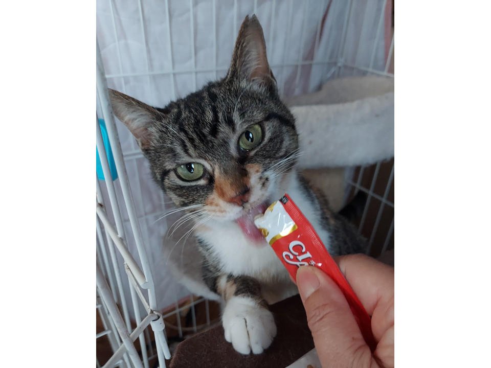チュールが大好きで子育て時代の癖が残り、可愛い声で甘えておねだりします。