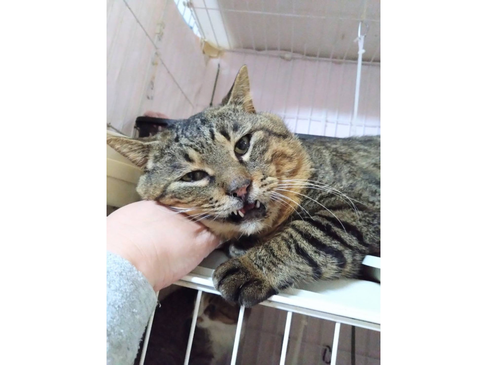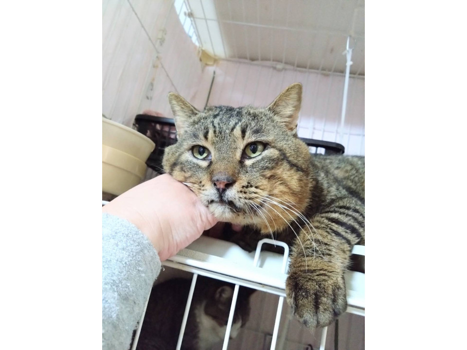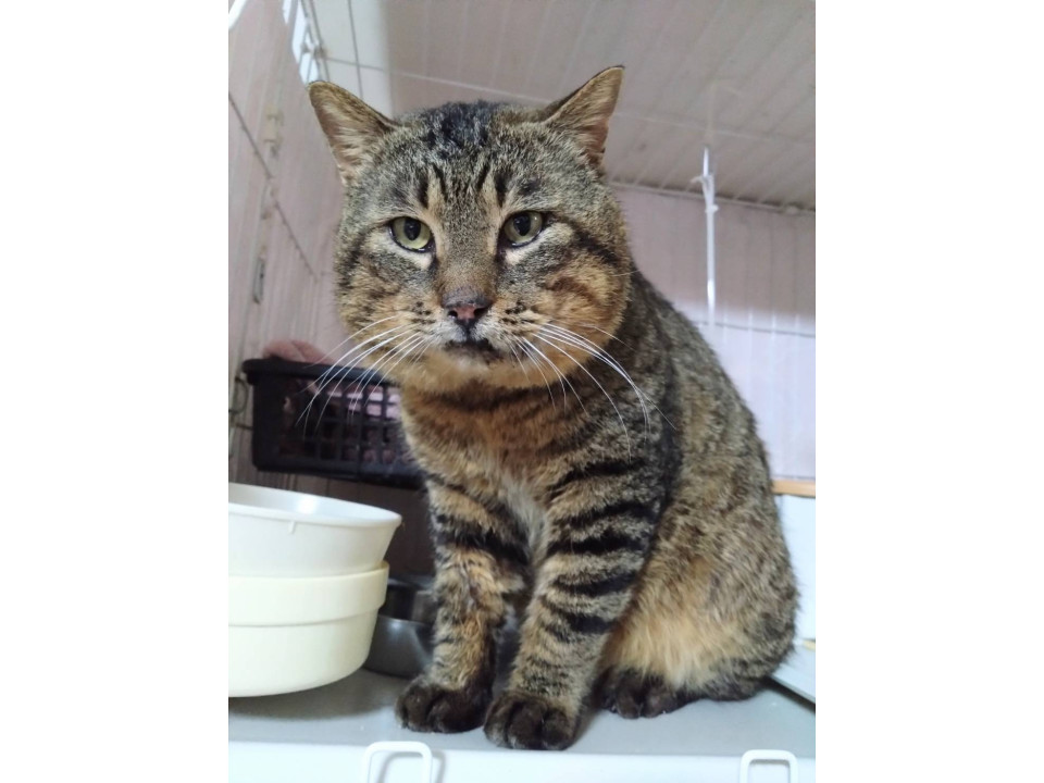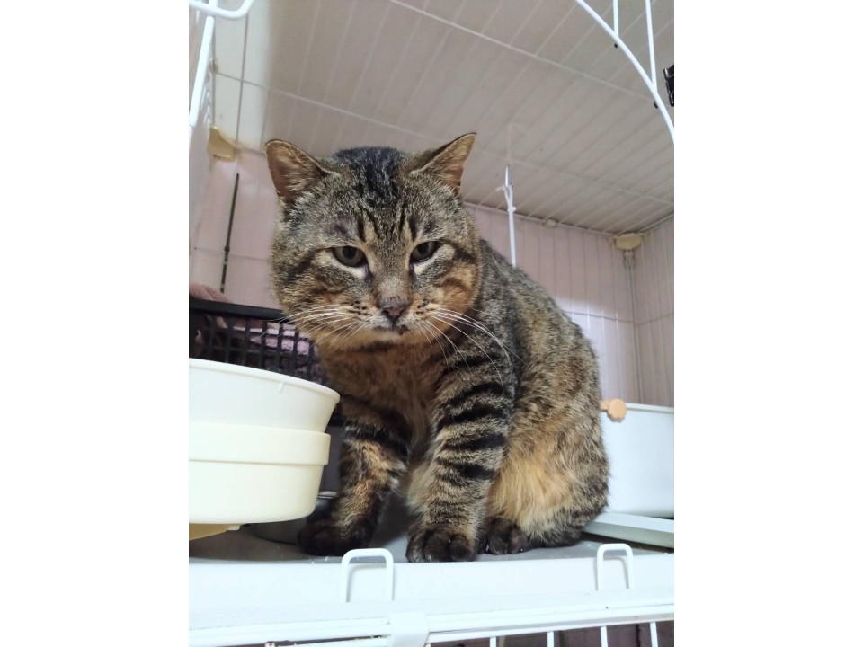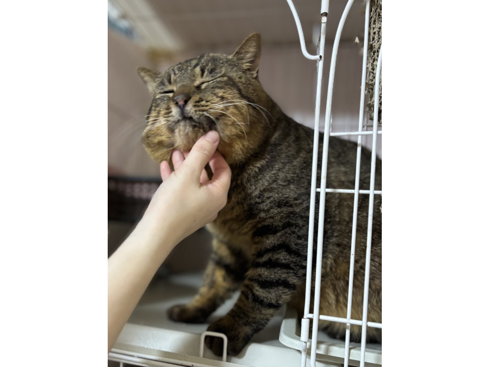 ○推定5歳くらい(2025年2月時点)のキジトラの男の子です。体重は5.5kgくらい(2025年2月時点)です。