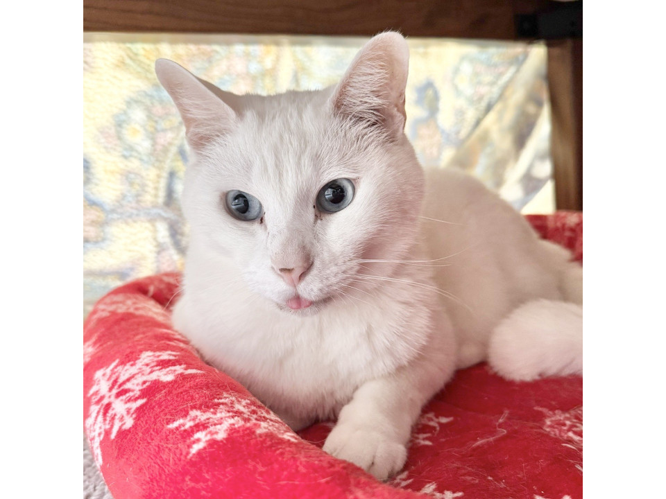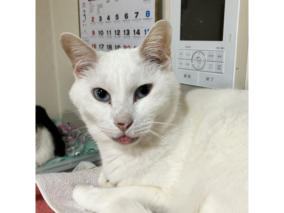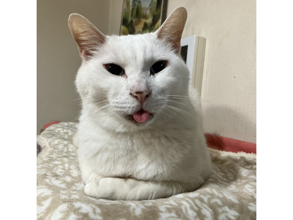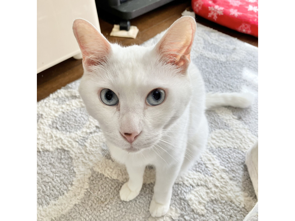 ○推定6歳くらい(2025年3月時点)の白猫の男の子です。体重は5.06kg(2025年1月12日時点)です。