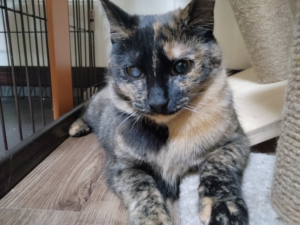 猫風邪の影響で片目が白濁していますが日常生活には支障ありません。