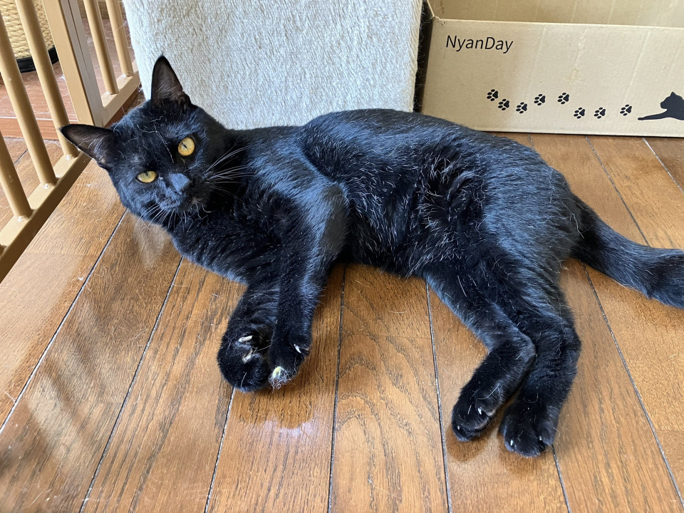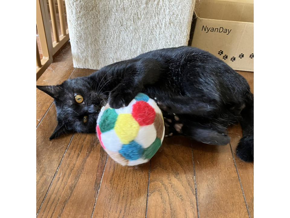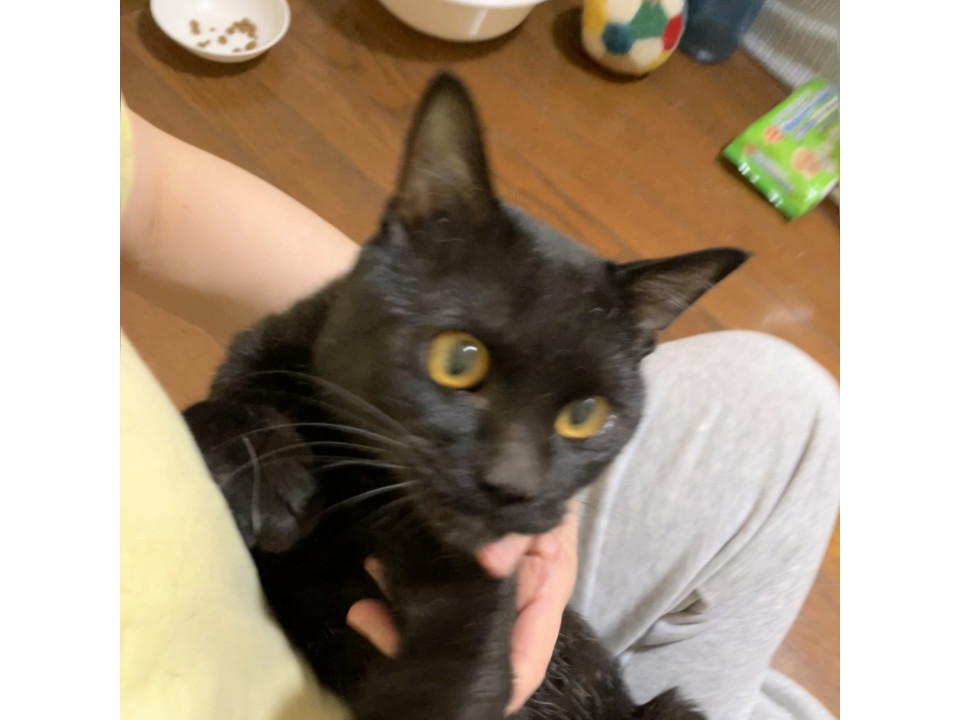 ○推定2、3歳くらい(2025年4月時点)の黒猫の男の子です。体重は2.96kg(2025年2月14日時点)です。