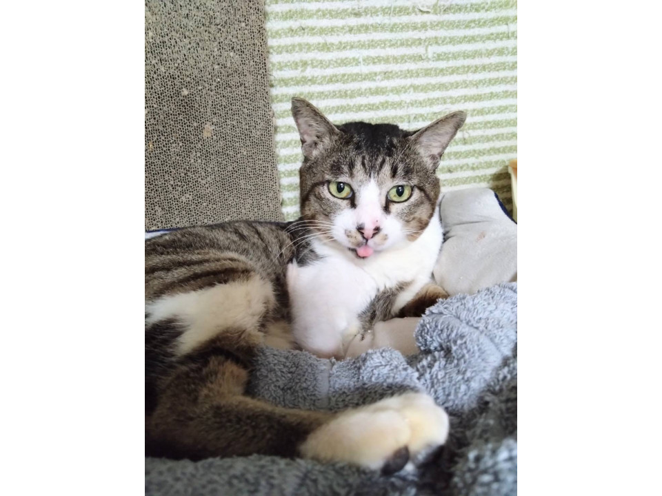 ○保護猫なので正確な年齢は不明ですが、推定5歳以上くらい(2025年4月時点)のキジ白ハチワレの男の子です。体重は5.0kg(2025年4月6日時点)です。