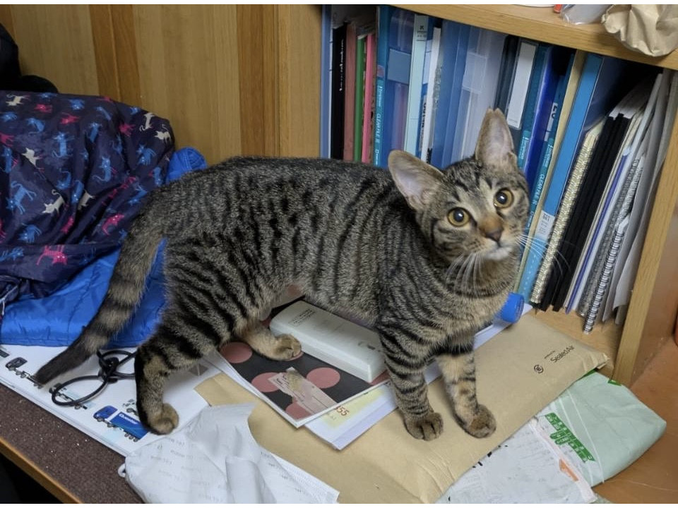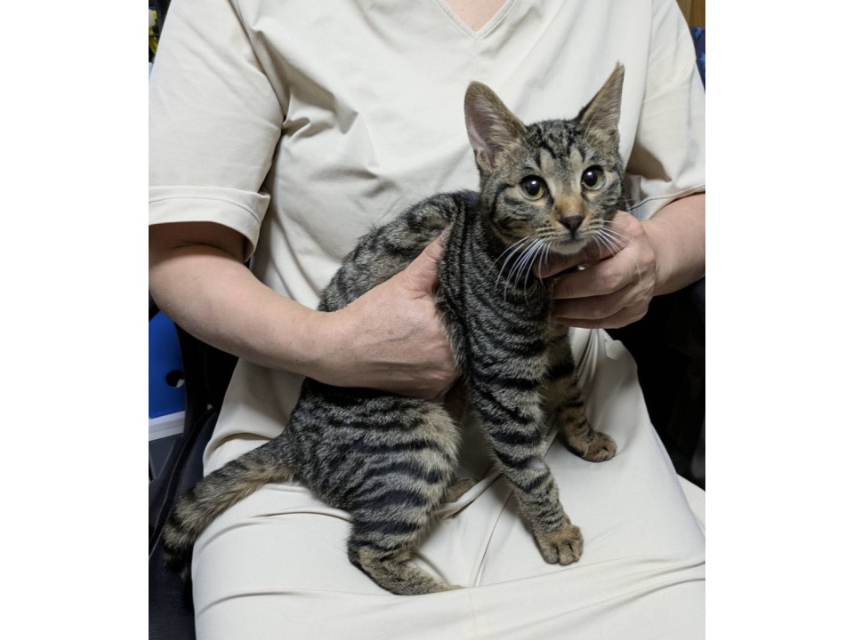 綺麗な縞模様のキジトラちゃんです。尻尾は長くて真っ直ぐです。穏やかで猫ちゃんも大好きです。一匹でも兄妹2匹でも大丈夫です。お留守番も出来ますので、共稼ぎの方にもまた猫ちゃんのいる方はお友達に慣れると思います。