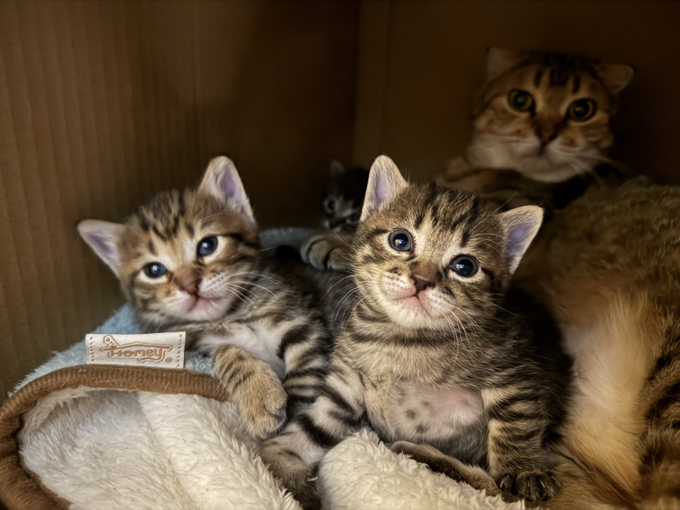TNR現場でいた妊婦猫を、出産が近そうだった為、堕胎できず保護し、その子が3匹出産しました。今は母猫と兄弟3匹でいます。