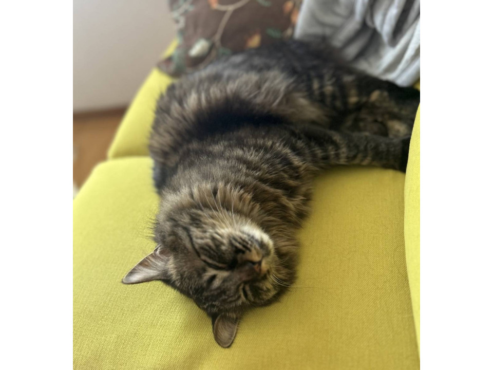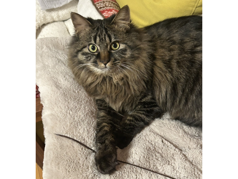 大きくてふわふわの長毛キジトラくんです。