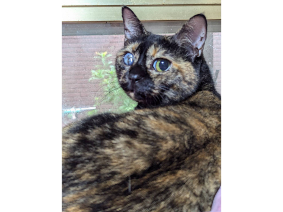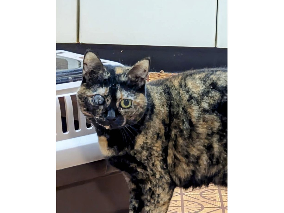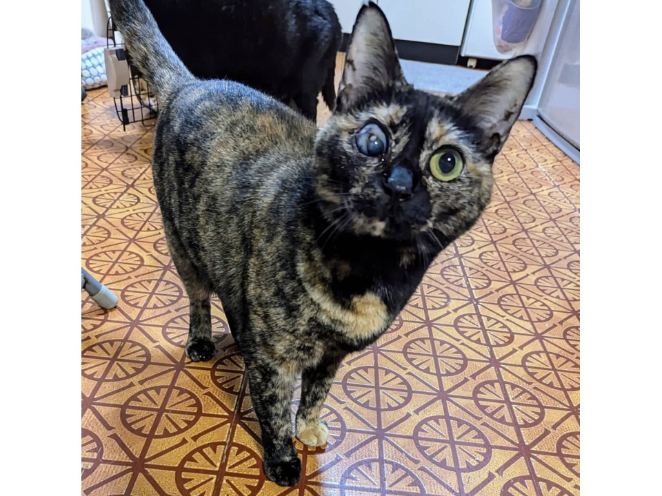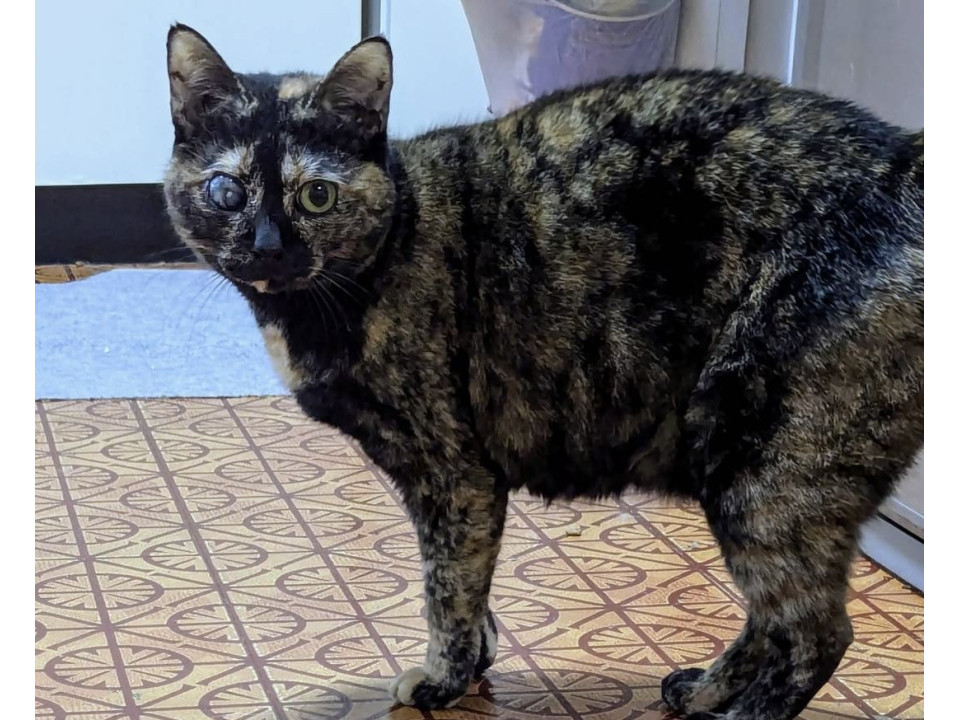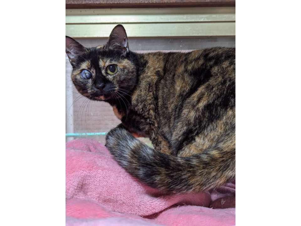 ●片目が保護時から白濁しておりますが生活には問題ございません。病院で診てもらいましたが治療は必要なく、このままで大丈夫との事です。
