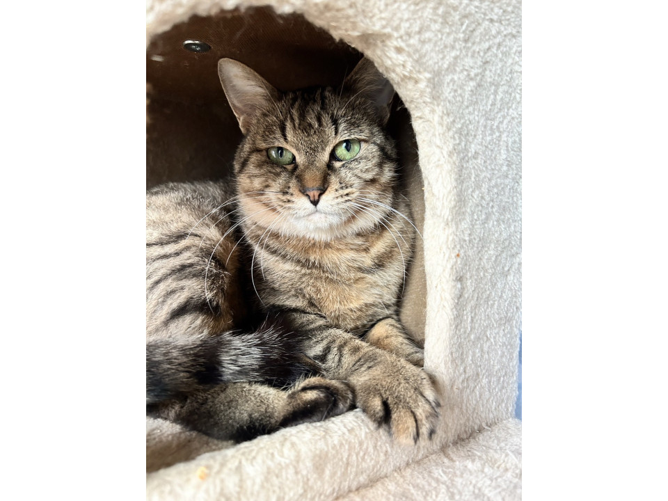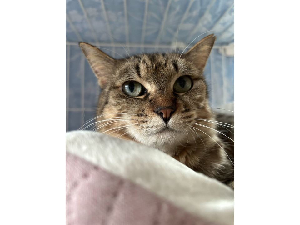 ○推定2〜3歳(2025年5月時点)のキジトラ柄の女の子です。体重は4kg(2025年8月時点)です。