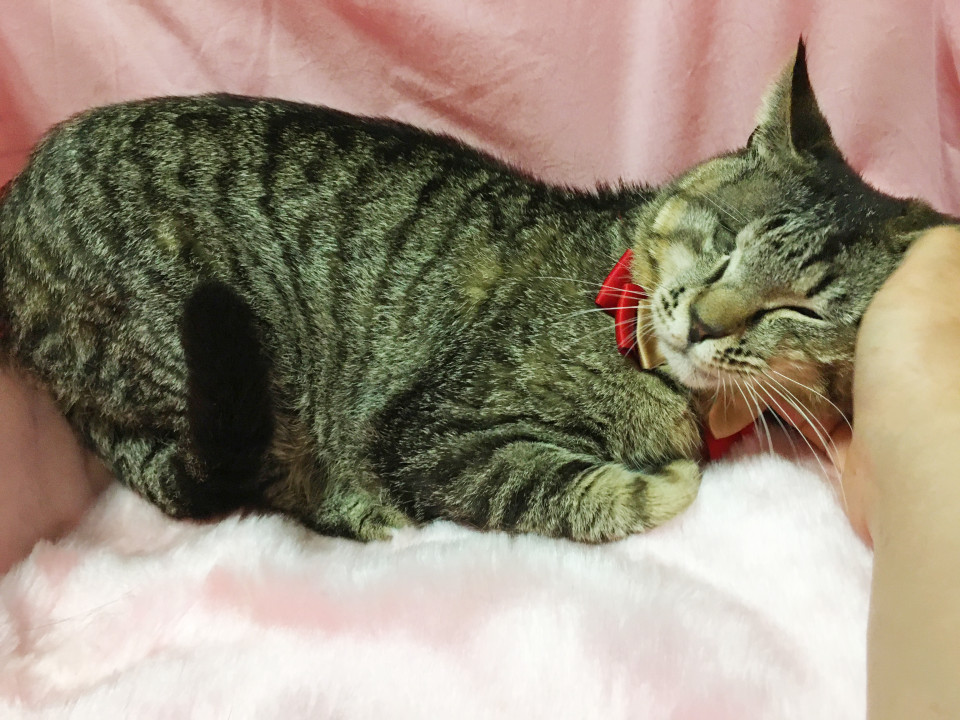 控えめで優しい性格で、なでてもらうのが好き。