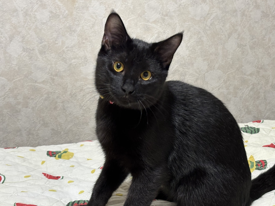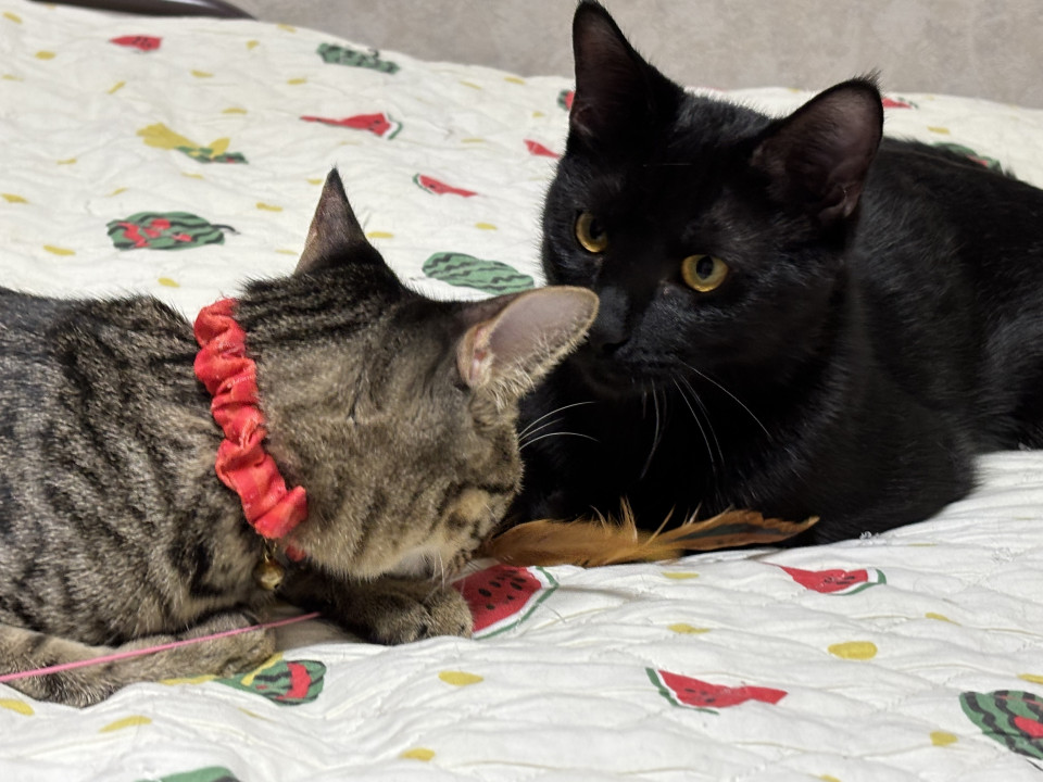 真っ黒な男の子です。愛らしい兄弟たち。大人しい控えめな子です。本当は甘えたくて一番に膝に来たり寄り添いたいのに順番を待っています。そんな姿は見ていて健気すぎます。お膝が独占できる日が待ち遠しです。猫じゃらしで遊ぶ時も優しいです。