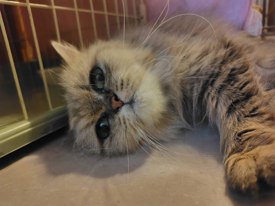○推定年齢8〜12歳(2025年6月時点)の、シニアと見られる小柄なペルシャの女の子です。体重は2.15kg(2025年6月5日時点)です。
