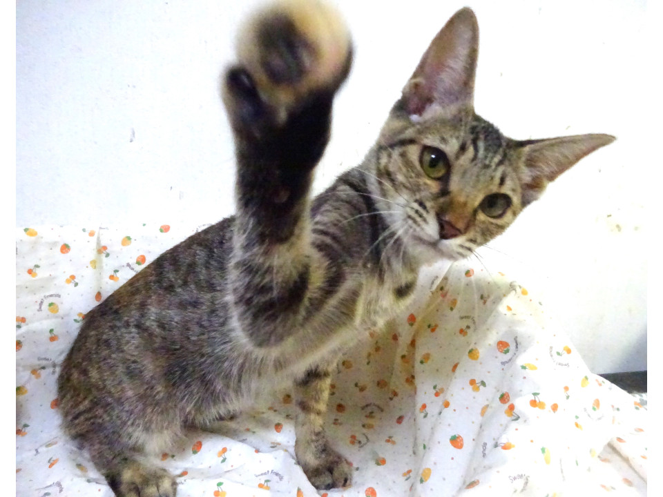 性格: まだ個性ははっきりとわかりませんが、保護時は威嚇していたけど、今は威嚇なく抱っこ出来るし、近づくだけでスリスリ近寄ってきます。兄弟の栗ちゃんと一緒にプロレスしたりして遊んでいます。 子猫だけ隔離していますので、大人猫と上手く付き合えるかはわかっていませんが、姿は見ていますので、あまり怖がらないと思います。 子猫達とはうまくつきあえます。 お届けは千葉県内で千葉市幕張から車で1時間位を希望しています。
