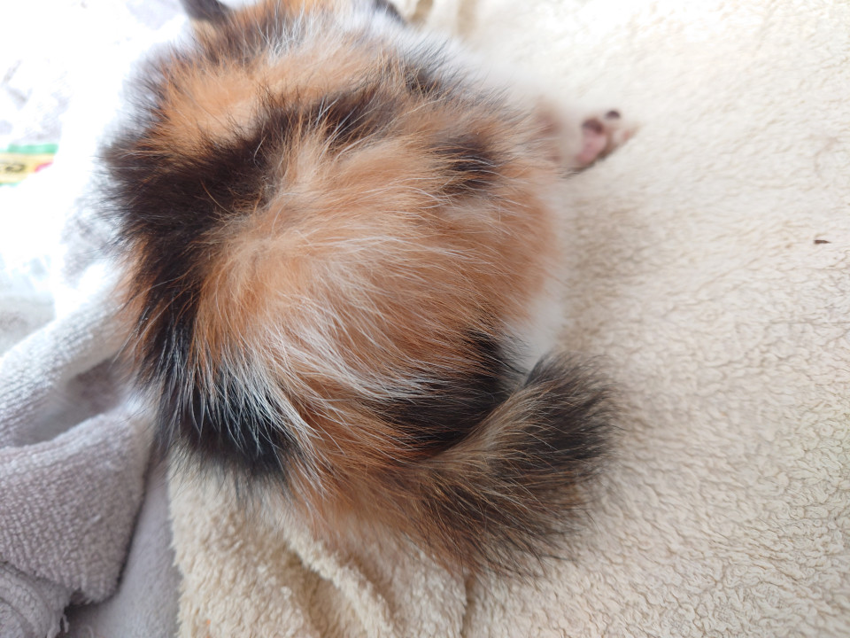 首の前と後ろに噛まれたキズがあったのでまだ毛が生え揃っていません。
