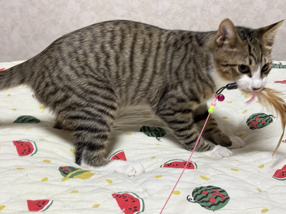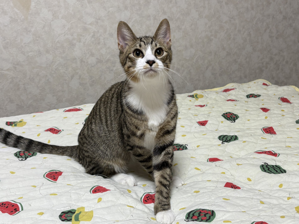 愛らしい兄妹たち。美佑ちゃんと兄妹です。毛色はキジトラ柄ですが黄色系の優しい毛色です。マイペースですがとにかく甘え始めたら猛烈です。元気いっぱいに遊んで食べて寝て過ごしています。