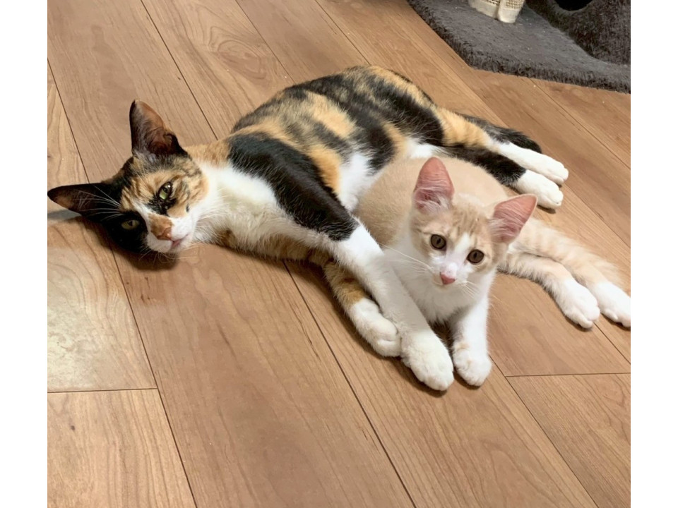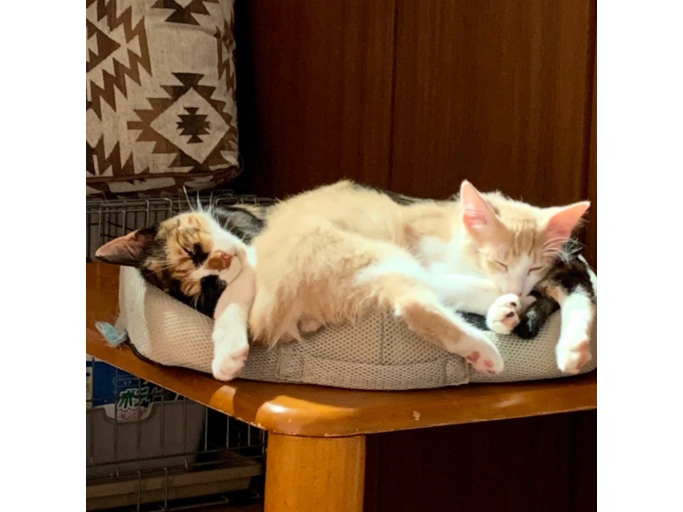 まだ1歳くらいの、小柄で華奢な若いママさんです。母性愛が強く、子猫3匹を立派に育てました。