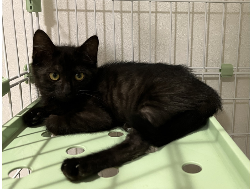 黒トラ?手足にうっすらトラ柄のある元気いっぱいな女の子です。