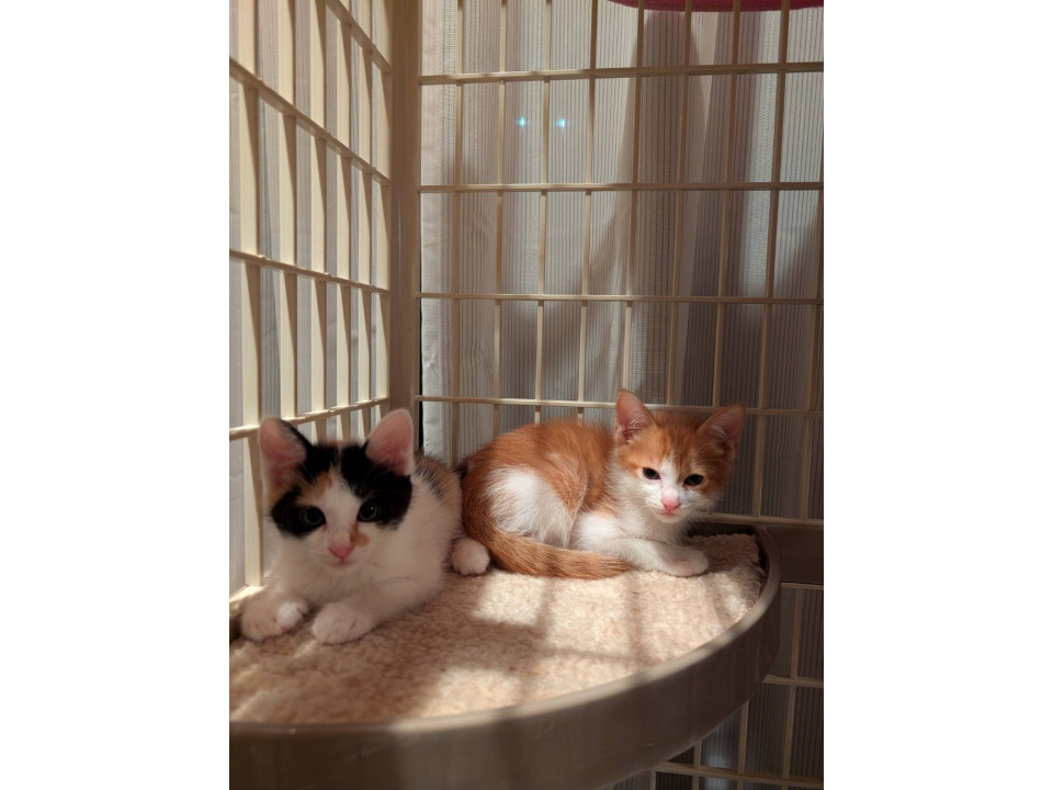 サビ猫モモちゃん、白黒ハチワレゆずくん、茶白ランくんと兄妹