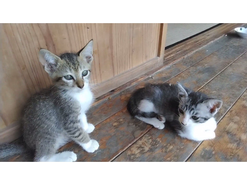 兄弟のサバくんと遊んでいる動画です。手前がキジくん、後ろがサバくん。