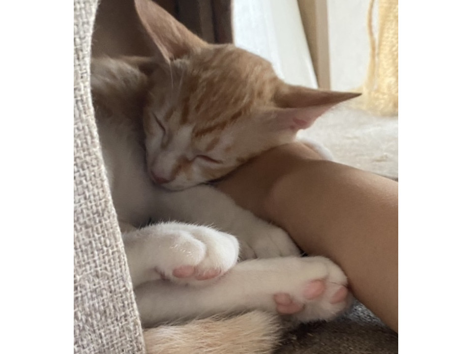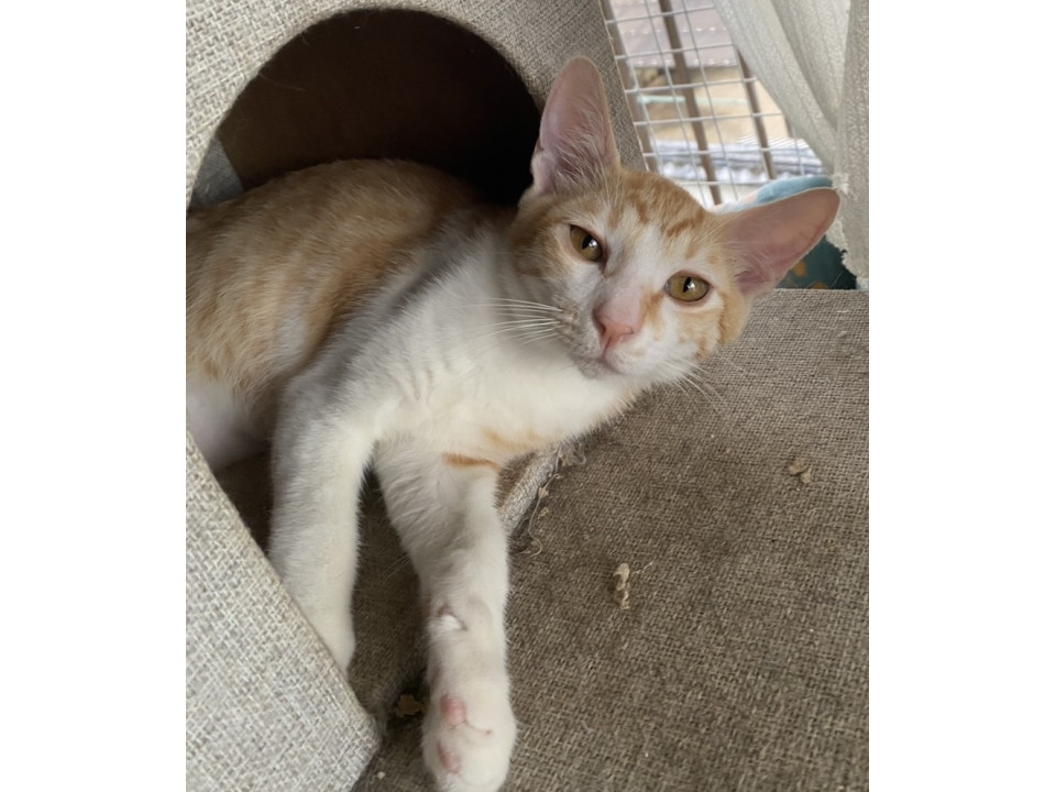 絶賛人馴れ修行中のぱっちりお目の茶白男子です。