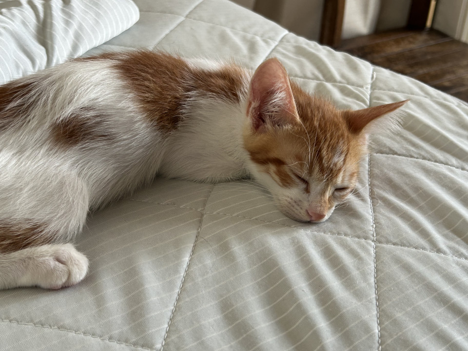 中に痩せた子猫がいると連絡を頂き保護しました。当時はとても痩せていましたが、