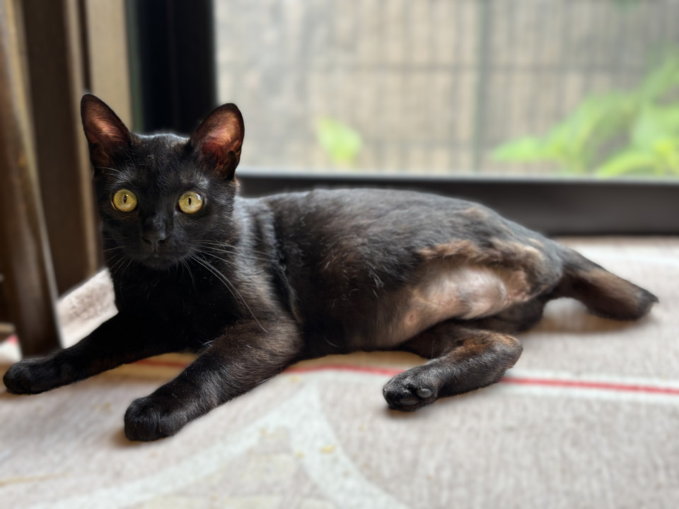 子猫時代に大人猫にケガをさせられ左後脚を根元から断脚したそうです。