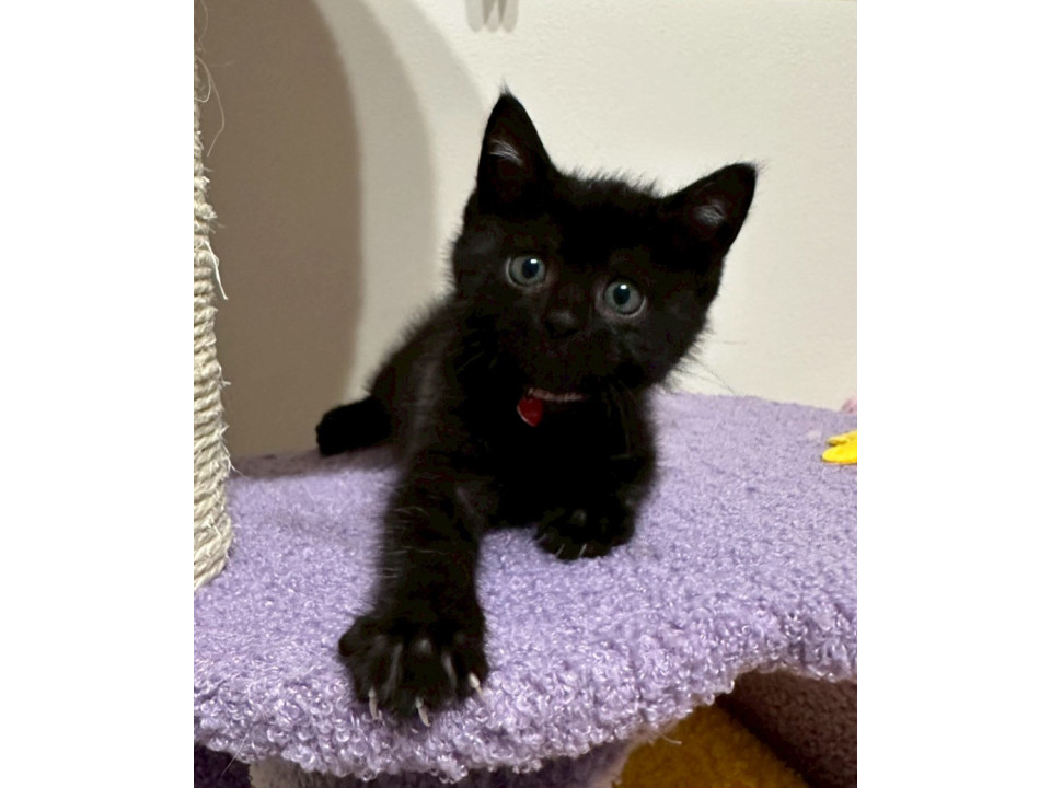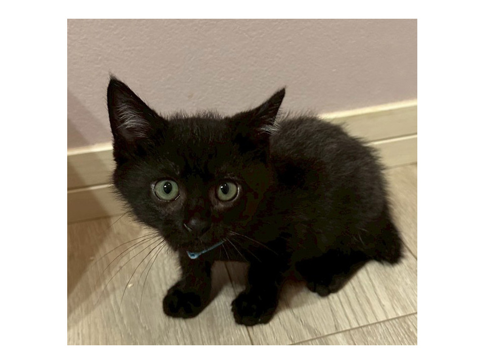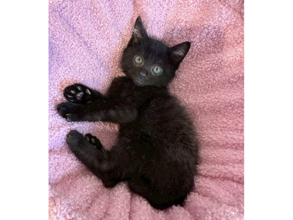 フワフワした毛並みでずっと触っていたい黒猫ちゃん、背中に少しグレーが入ってます。尻尾は短めの鍵しっぽ。