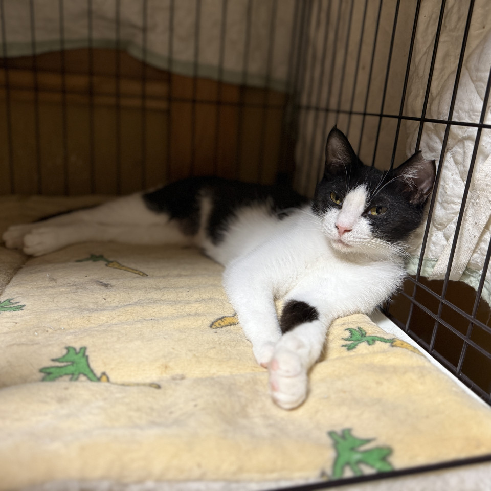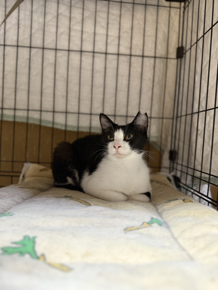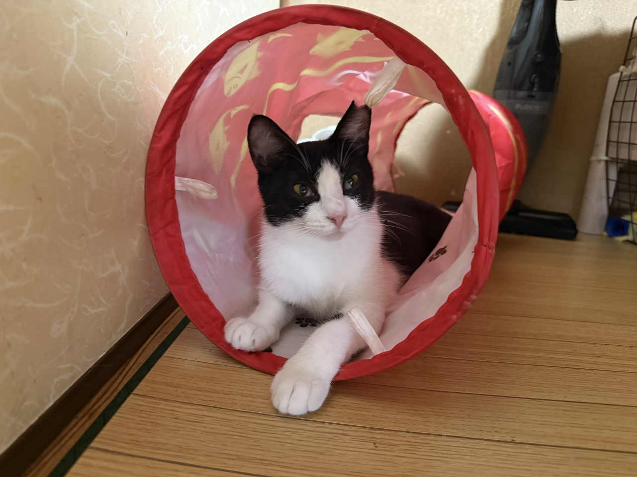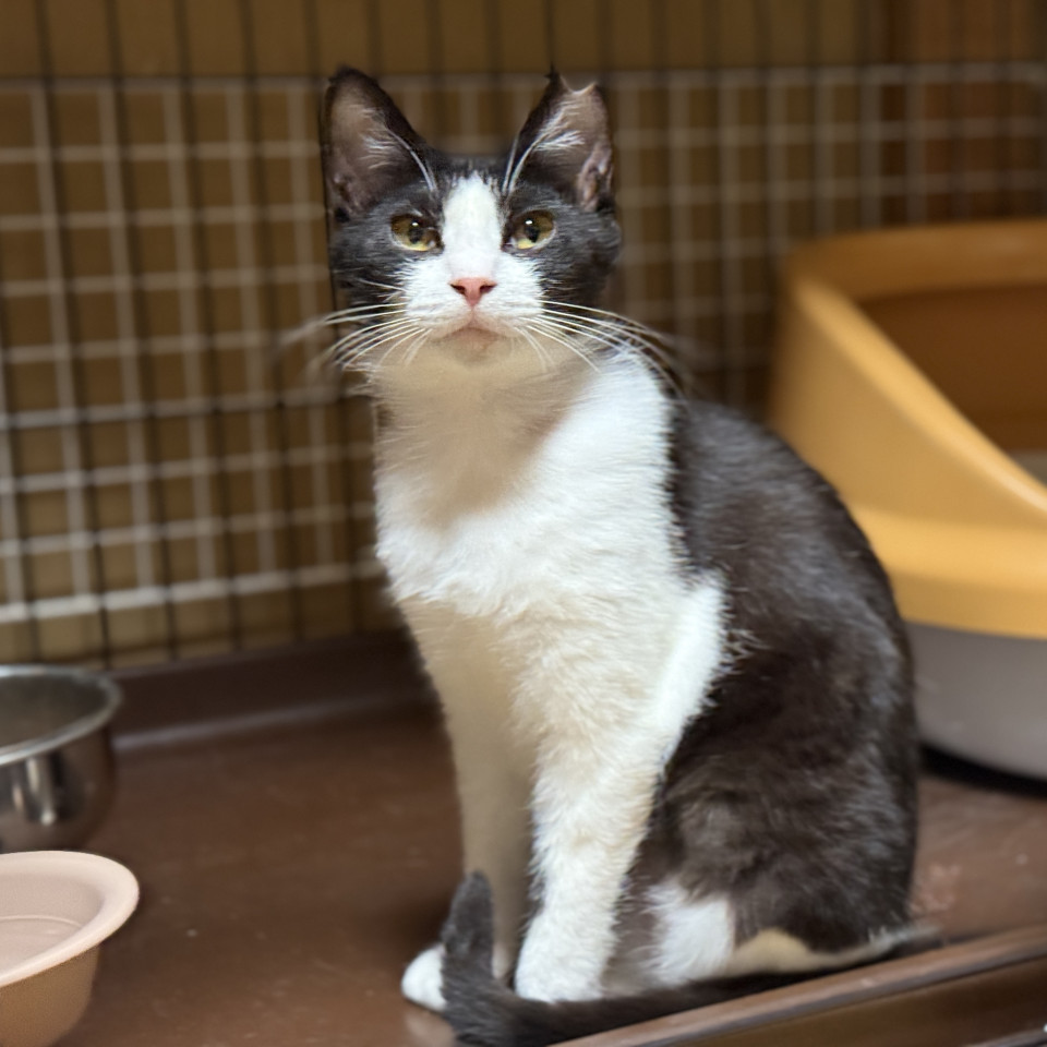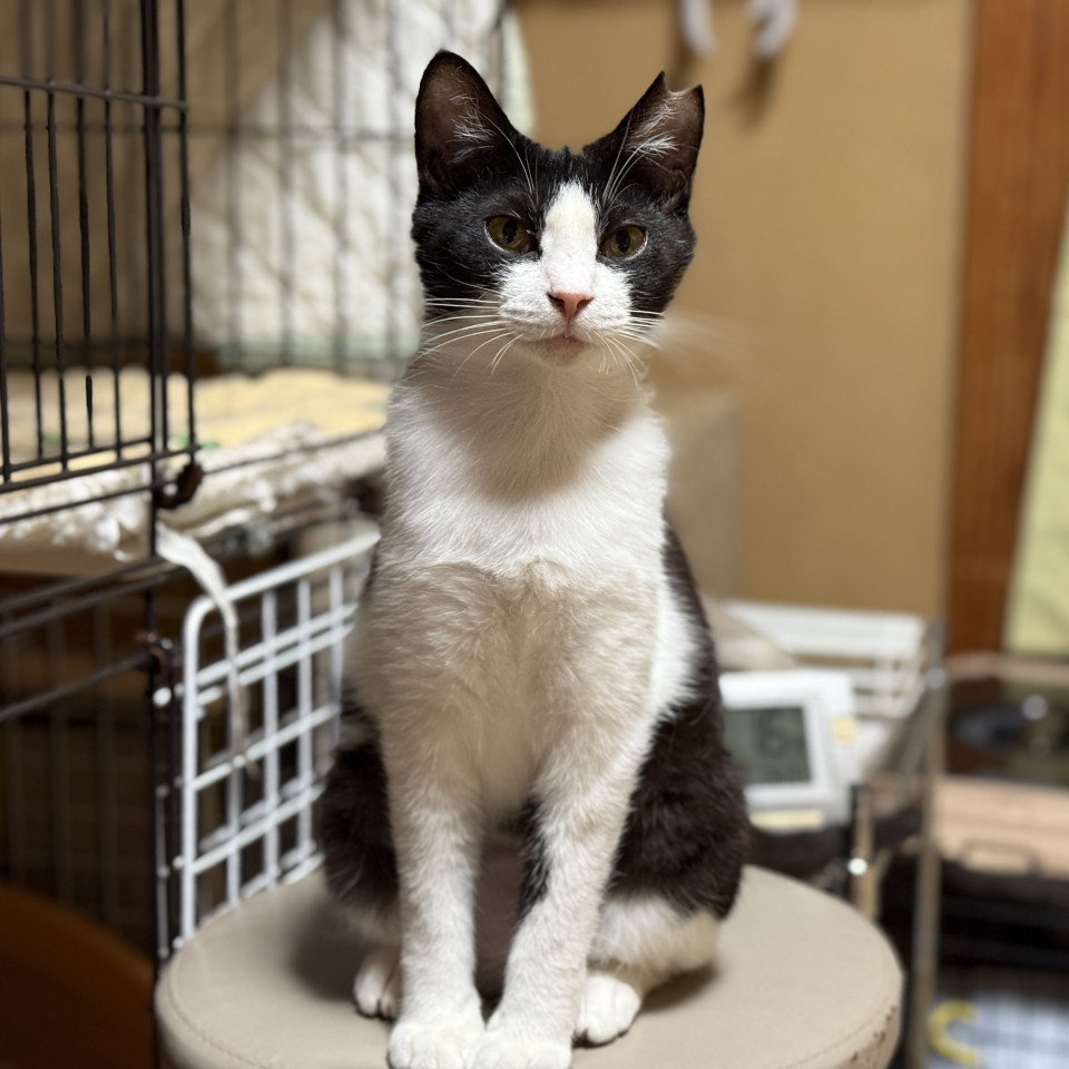 生後4ヶ月ごろに保護されたせいか、臆病な性格で、まだまだ人馴れ修行が必要です
