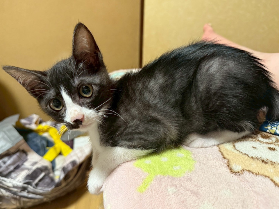 ママ猫と一緒にいたため、最初はシャーシャー威嚇していましたが、人馴れ修行を経てスリスリ猫さんになりました
