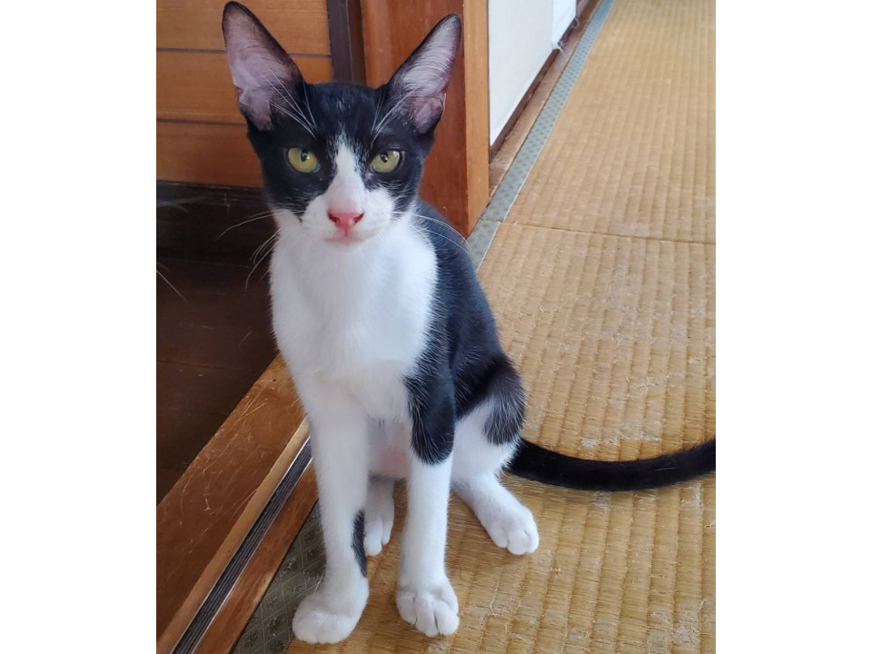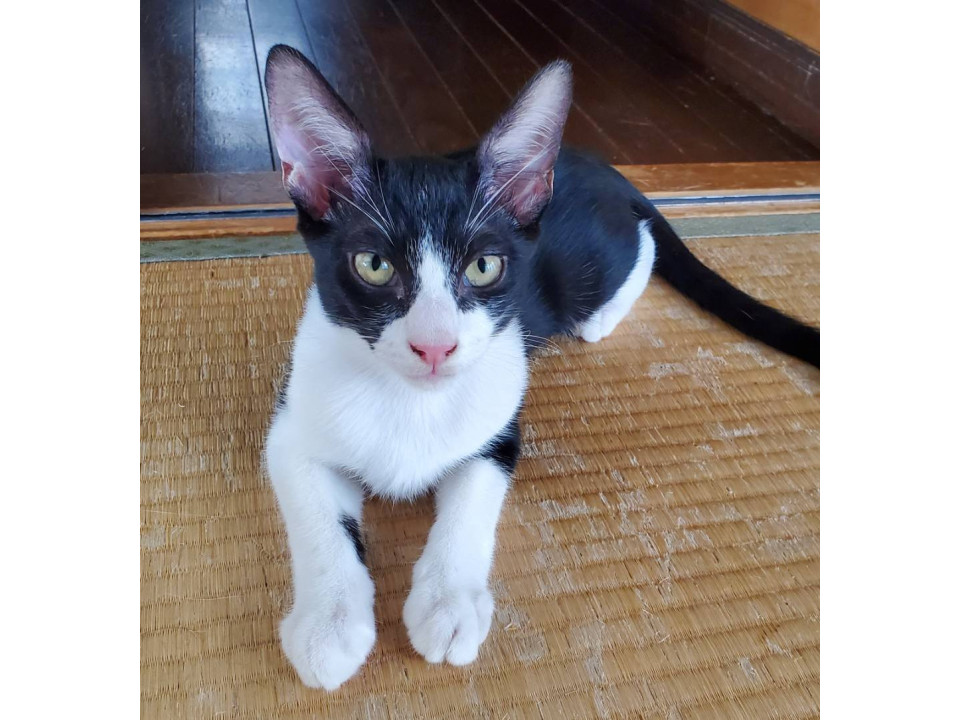 ○深めのハチワレ柄と、左手首の黒斑がチャームポイントです。