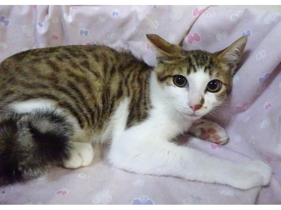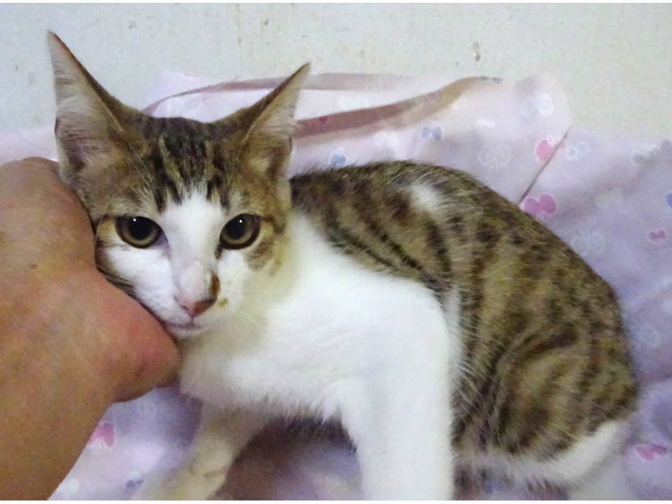 性格: 保護時は怖がって奥のほうに隠れるものの、威嚇や攻撃はなく、すぐに触れるようになりました。 男の子ですが、大人しい方です。 ちゃんと食べるので体はしっかりしていて、重いです。 大人猫と付き合えるかわかっていませんが、外には大人猫がいたので大丈夫かなと思いますし、ケージ越に挨拶はしています。 人が来ても逃げませんし、猫も人も大丈夫かと思います。 抱っこすると喉ゴロゴロしてくれます。 大きなじゃらしが怖い・・・という面もあるようです。 お届けは千葉県内で千葉市幕張から車で1時間圏内でお願いします。