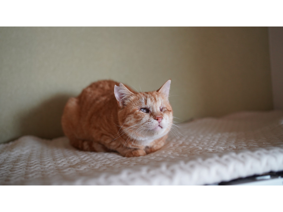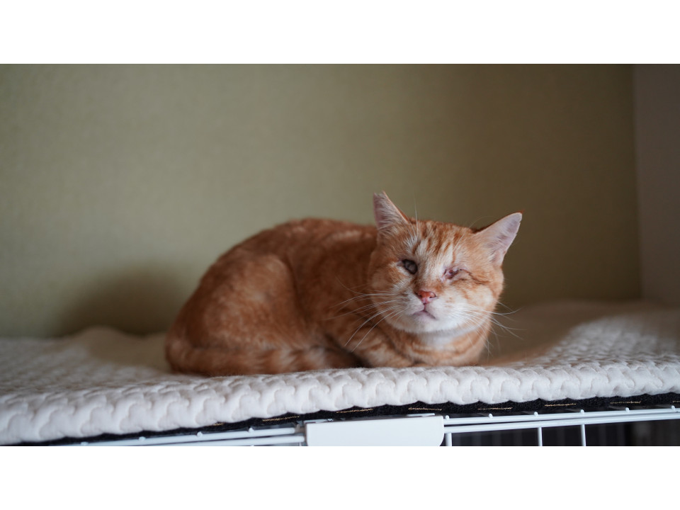 いつから両目がないのかは不明ですが、周りの猫達に支えられて生きて来た子です