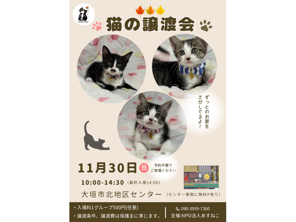 団体ホームページ<譲渡を希望される方>をご確認ください。