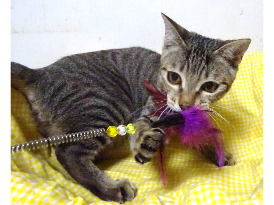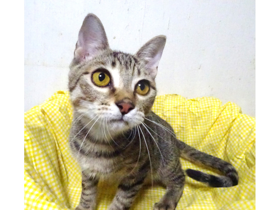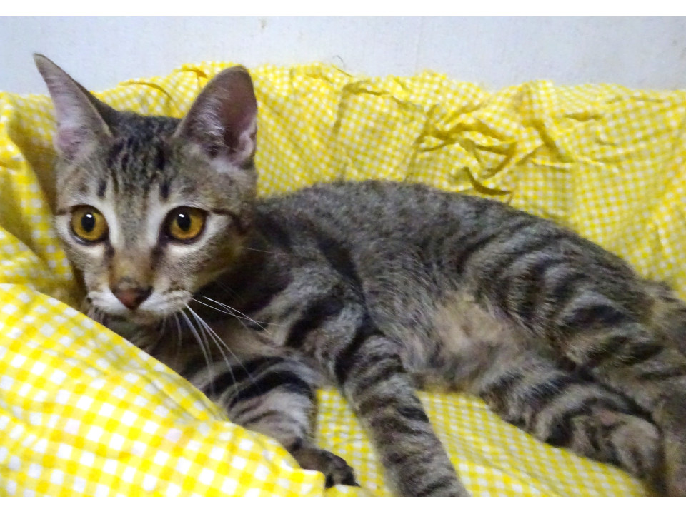 性格: 保護時より威嚇なく、抱っこ出来ましたが、怖がりの面もあり、抱っこしようとすると逃げてみたり、近寄って手にタックルしたり、半分は遊びのようです。 兄弟がいたかどうかもわからず、今は、一人なので、猫社会の学習が出来ているか心配な面もありますので、優しい先住猫ちゃんがいるお家で教育してもらうのも良いかなと思います。 抱っこすると喉ゴロゴロで、診察が出来ないようです。保護時は小さくて心配しましたが、大きくなっています。 でも小柄な方だと思います。