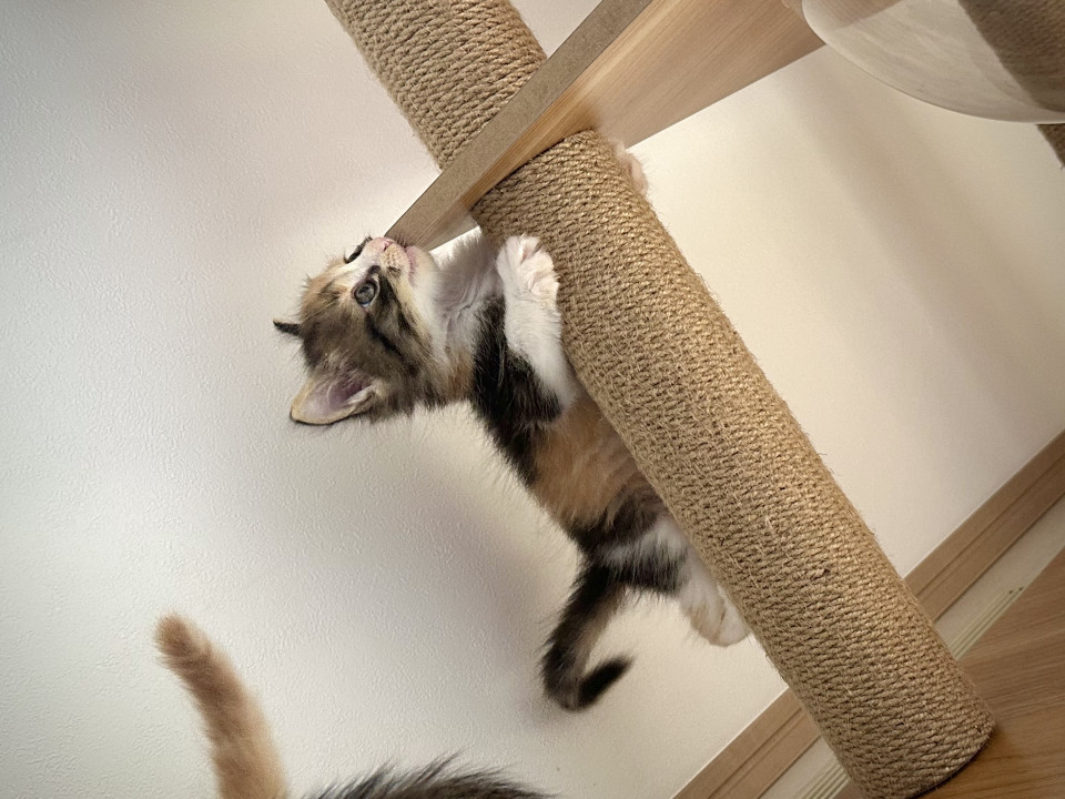 食いしん坊でご飯のときは3匹でにゃーにゃー言って後をついてきます!